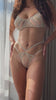 This luxurious lingerie set is exquisitely hand made with high quality materials. The bra, panty and garters are decorated with rhinestone stripes that shimmer with all the colors of the rainbow and captivate everyone with their unique brilliance.