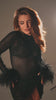 Diamond Swan Embellished Ostrich Feather Long Sleeve Mini Dress